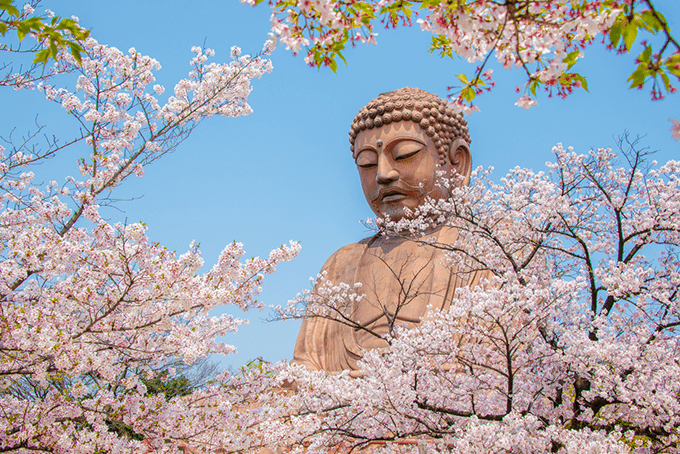 聚楽園大仏(しゅうらくえんだいぶつ)は、1927(昭和2)年に昭和天皇のご成婚を祝い、愛知県知多郡上野村(現在の東海市)にあった料理旅館・聚楽園の敷地内に造られました。造立者は同園を経営していた実業家の山田才吉。高さ18.79メートルの鉄筋コンクリート製の阿弥陀如来像です。現在は東海市の文化財(市指定名勝および市指定建造物)に指定されています。